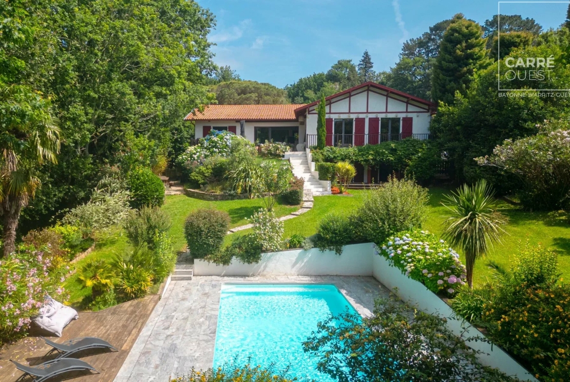 Dans un environnement calme et verdoyant à proximité du bourg et du golf, cette maison de style néo-basque d’environ 350m² est implantée sur un terrain arboré de plus de 4000m².
