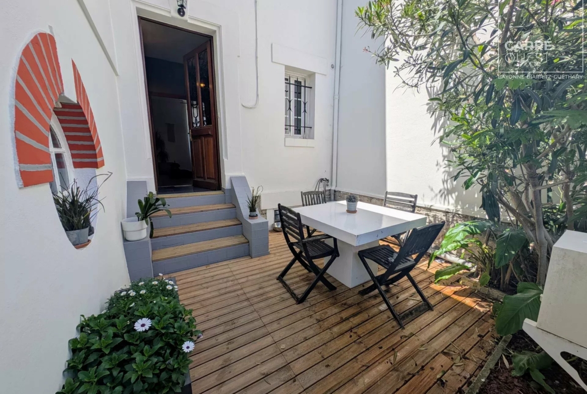 A deux pas de la plage de la Côte des Basques à pied, parfait compromis maison /appartement de 110M2 environ idéalement situé.